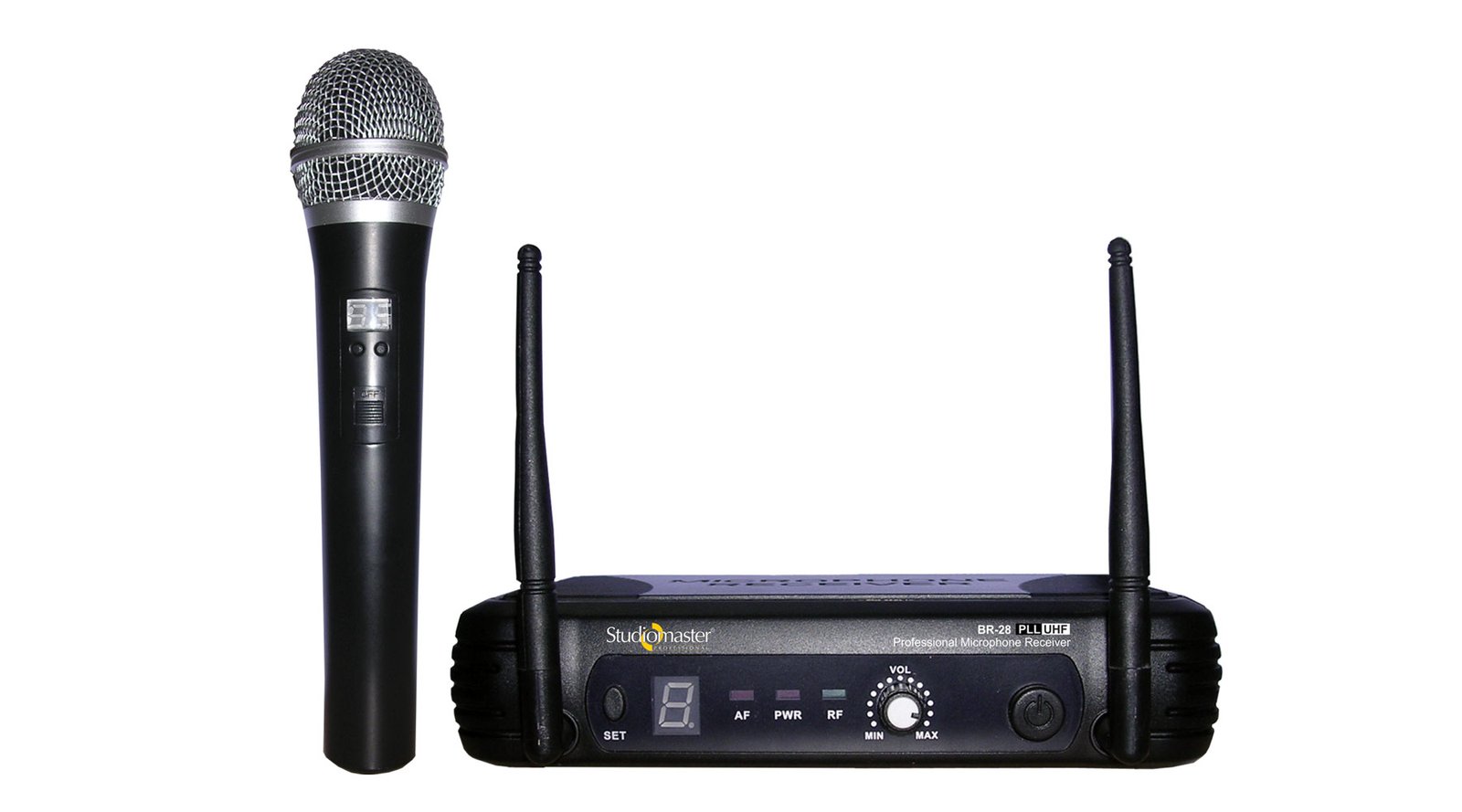 The Studiomaster Professional BR 28/BM 28 is a Handheld Wireless Microphone System with 8 Selectable UHF Channels. The selectable 8 UHF channels ensure flawless and non interfering performance, along with an exceptionally clear microphone make the BR 28/BM 28 a great value proposition.